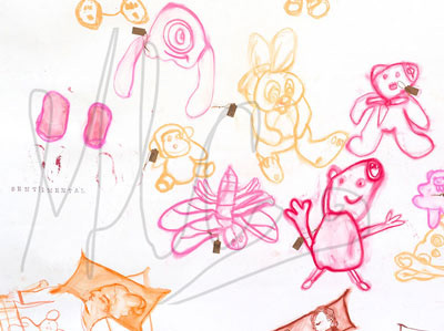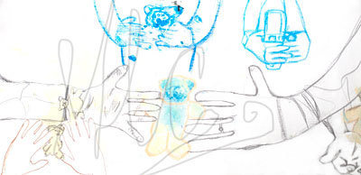 Collaboration with family, public and nursery children. The input of mixed ages, towards attachment to physical objects, in particular cuddly toys. This was expressed through drawings.